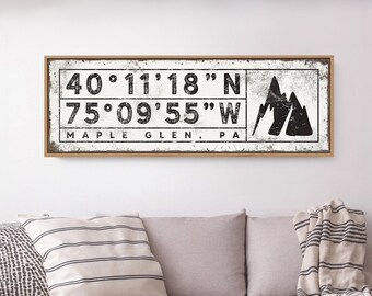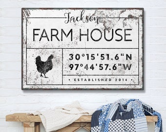 Farmhouse Coordinates Sign, Distressed Canvas (Custom GPS Latitude & Longitude)