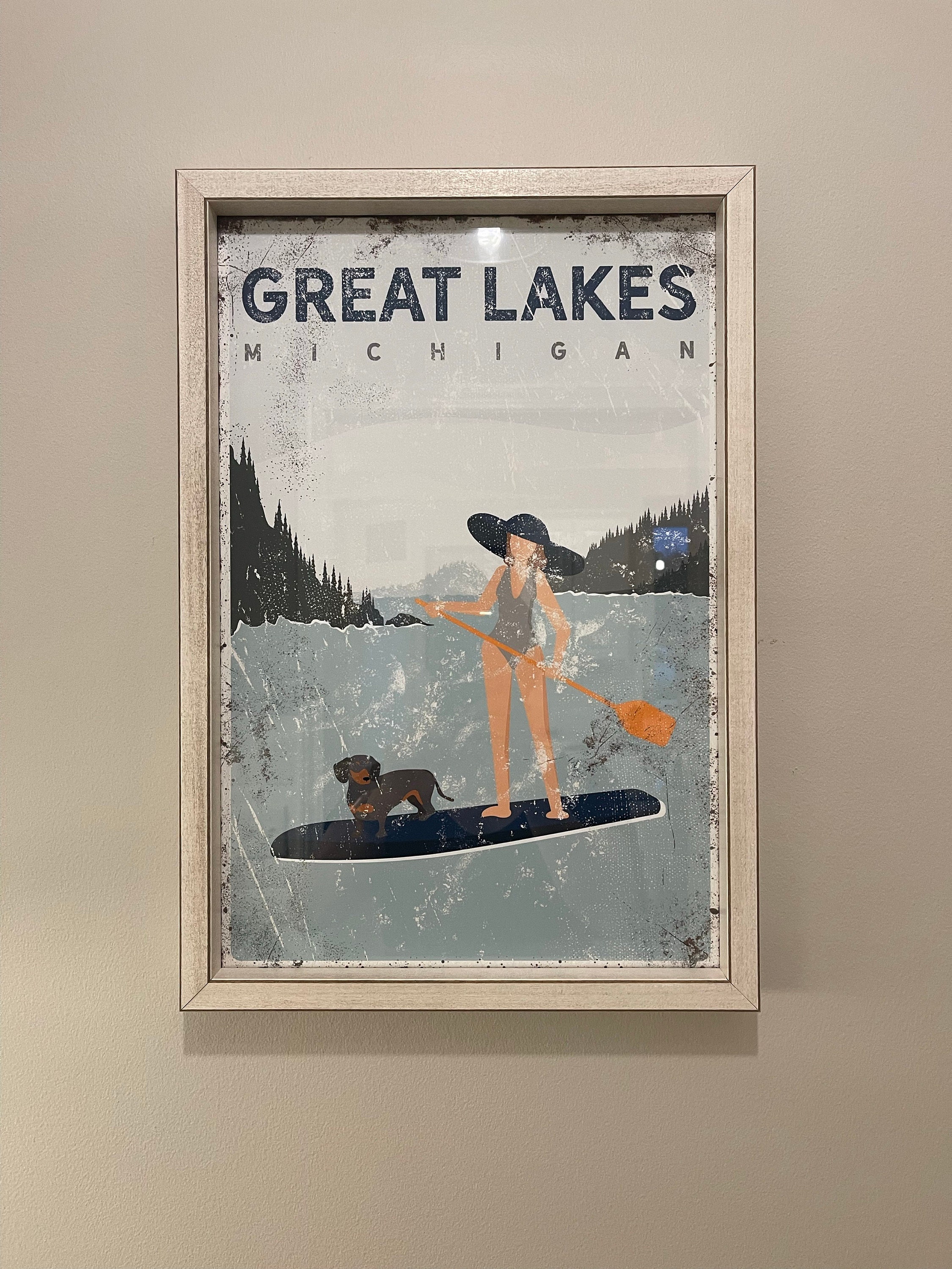 This one-of-a-kind art print can be personalized with ANY LAKE in the world, and your choice of text above or below it. There are also many dog breeds and colors to choose from!
