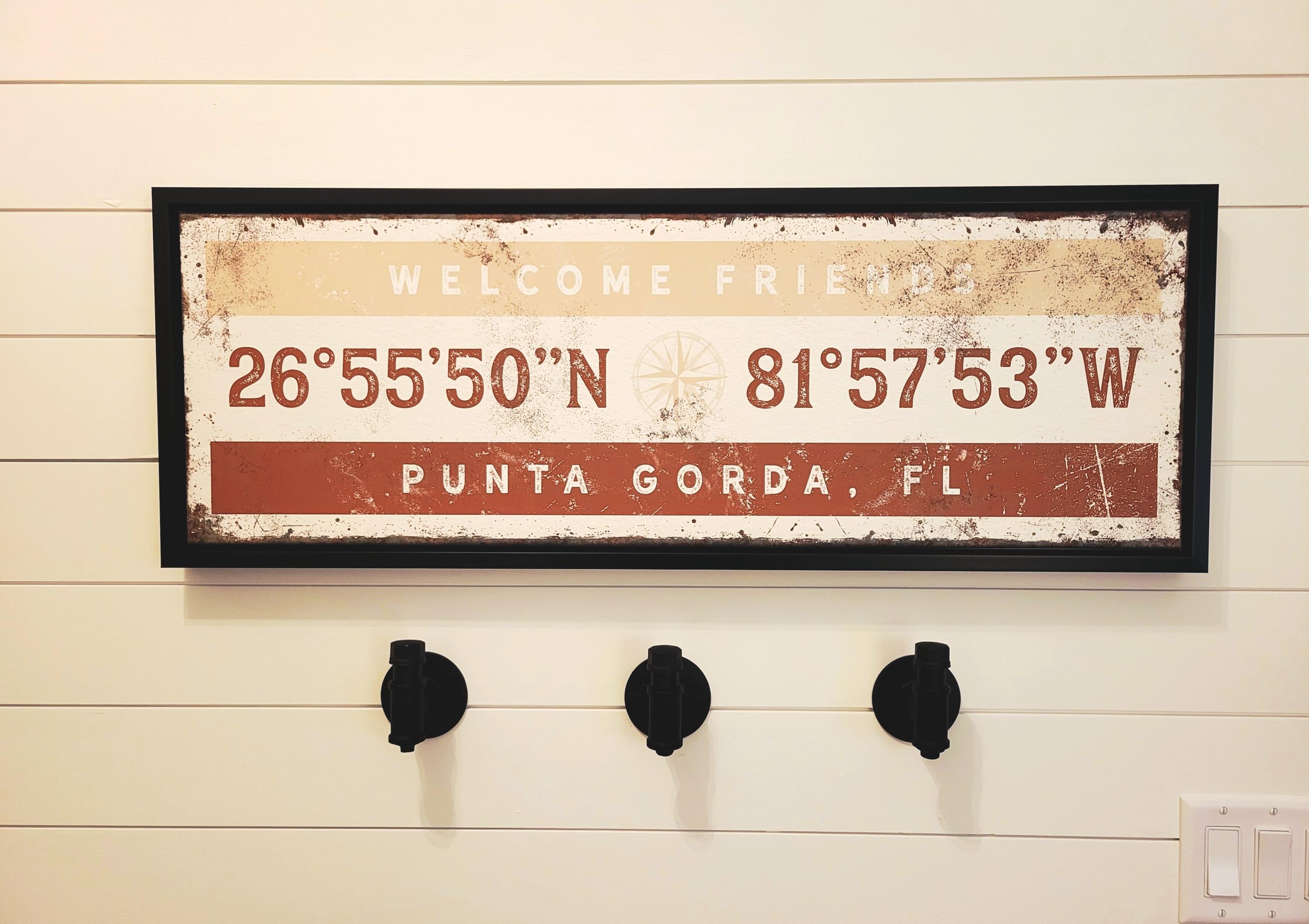 This personalized COORDINATES SIGN is a unique addition to your modern farmhouse decor! The vintage lettering and distressed texture add effortless, relaxed style to your home.